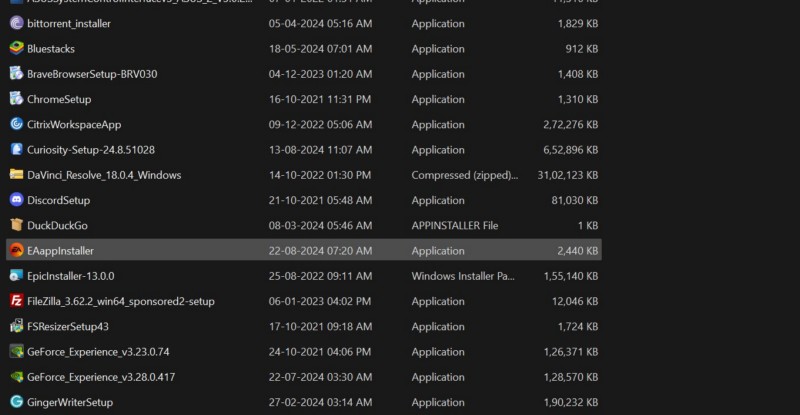 6.找到應用程序您剛剛使用上面的搜索欄卸載了該文件。