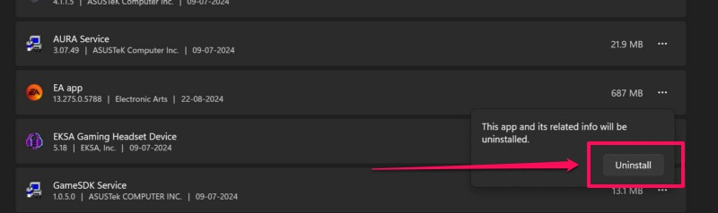 4.卸載完成後,重新啟動您的 Windows 11 設備。