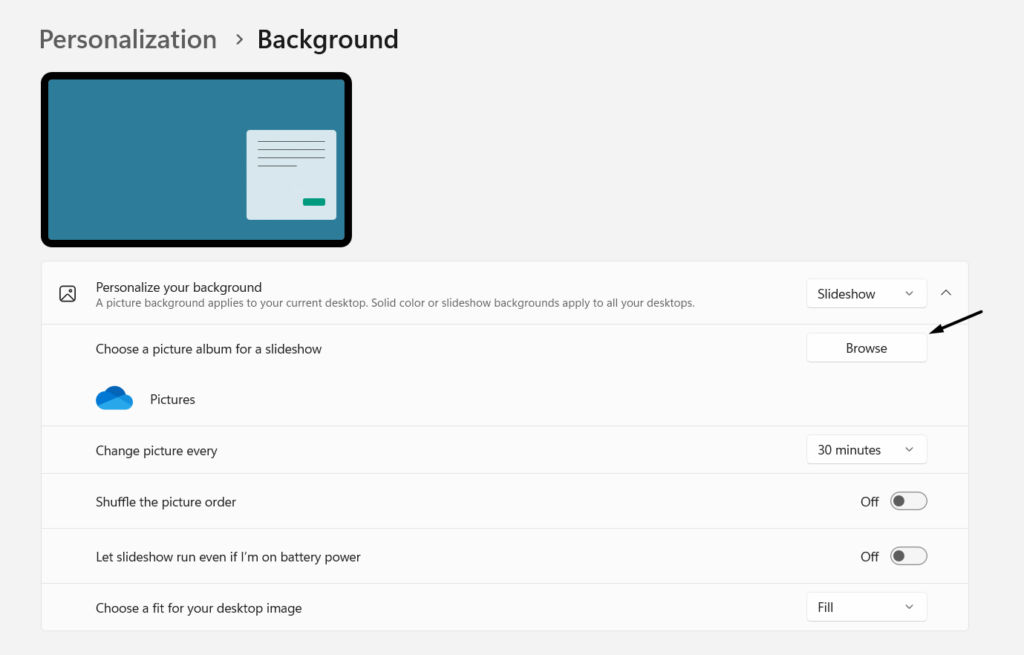 解決 Windows 11 中鎖屏幻燈片不起作用問題的另一種簡單方法是重新選擇幻燈片文件夾。您可能錯誤地取消選擇了幻燈片文件夾。因此,請按照上述步驟在 Windows 11 中重新選擇它: