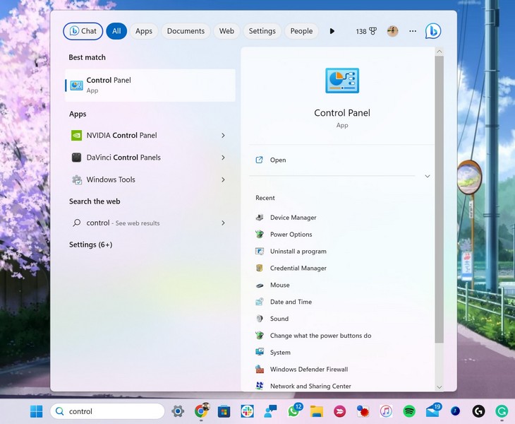 1.使用 Windows + S 打開 Windows 搜索並查找控制面板。