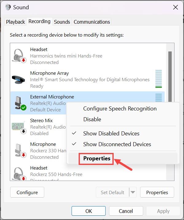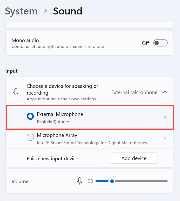 確保您的外部麥克風已正確連接並被 Windows 11 識別。檢查設備管理器並確保將其設置為默認輸入設備。