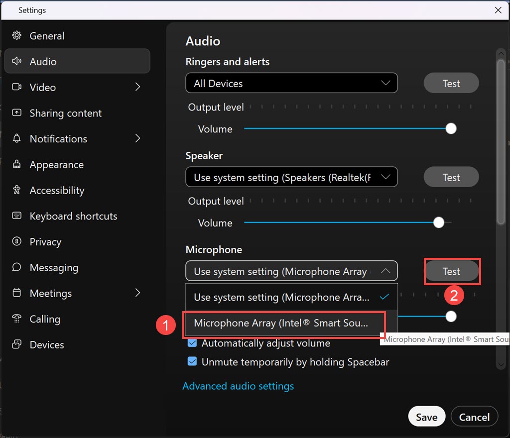 4.重新啟動 Cisco Webex 並測試您的麥克風。