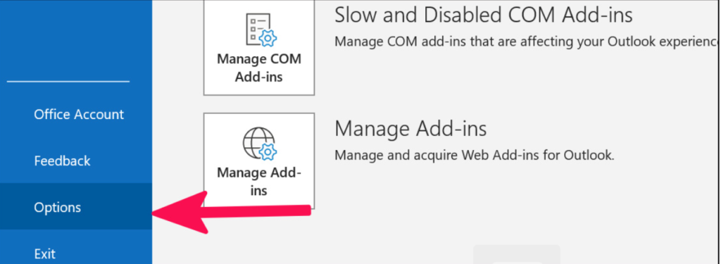 2.選擇選項從左側導航窗格中選擇管理加載項在右側屏幕上。