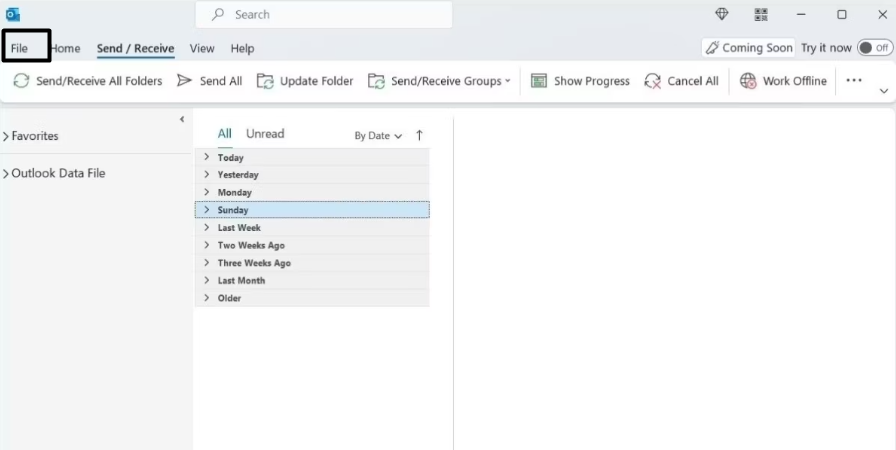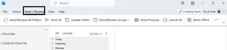 1.啟動微軟Outlook 應用程式在您的 Windows 11 電腦上並移至發送/接收選項卡。