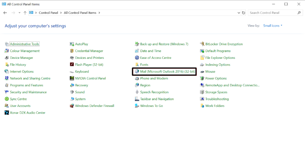1.打開控制面板在您的 PC 上,設置查看方式:選項小圖標,然後單擊郵件。
