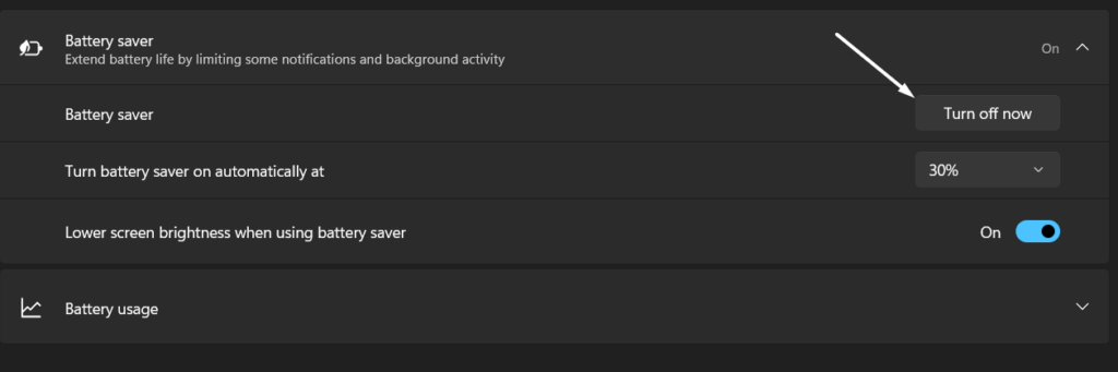 3.最後,單擊立即關閉按鈕可立即禁用 PC 上的省電模式。
