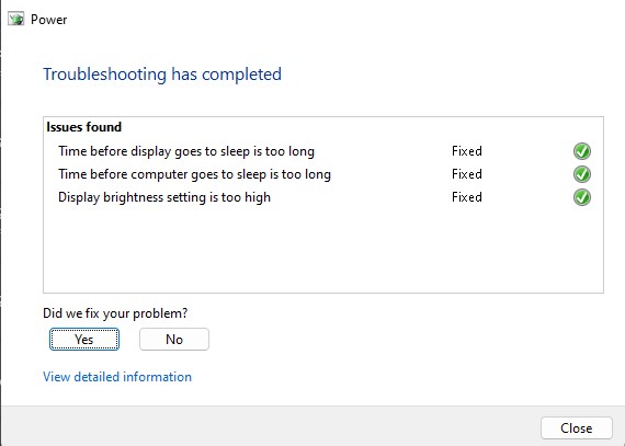 當您運行此疑難解答程序時,它將掃描您的計算機是否存在問題並嘗試自動修復它們。如果電源故障排除程序無法解決問題,它將為您提供其他故障排除步驟。