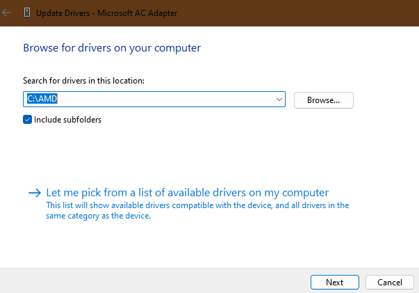 5.您還可以通過選擇手動更新驅動程序瀏覽我的計算機以查找驅動程序選項。單擊該選項後,使用以下命令在計算機上找到更新文件瀏覽按鈕並按照屏幕上的說明完成該過程。