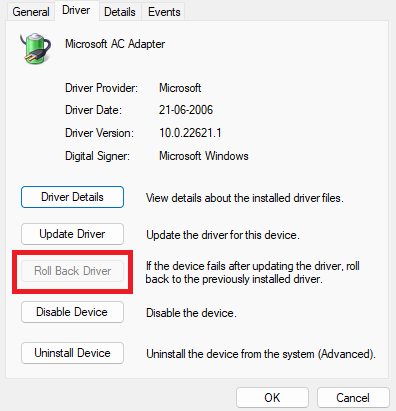 如果更新無法解決您的問題,請嘗試回滾到未遇到此問題的先前版本。在進行驅動程序回滾之前,請記住以下幾點: