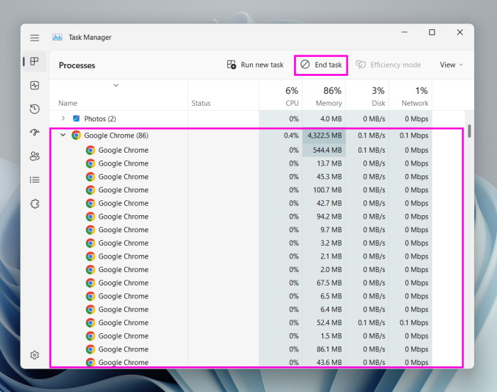 1.使用 Ctrl + Shift + Esc 熱鍵打開任務管理器應用程序在您的 Windows 11 電腦上。