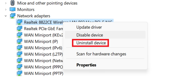 如果沒有可供安裝的可選更新或者安裝它們不能解決問題,重新安裝網絡適配器設備在您的電腦上。這將消除所有問題並解決此問題。您可以檢查以下步驟來了解如何重新安裝它們: