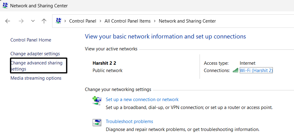 要在 Windows 11 PC 上啟用文件和打印機共享,請繼續執行上述路徑: