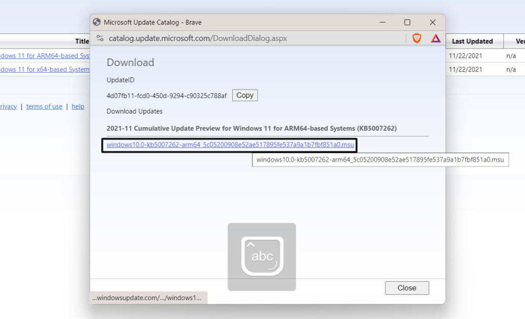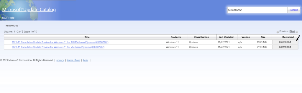 1.點擊這裡移動到微軟更新目錄您的網絡瀏覽器中的官方網站。
