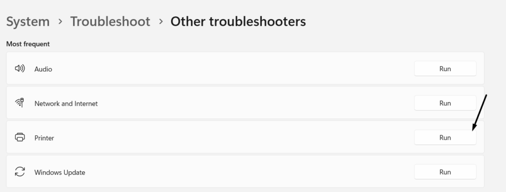 最新的 Windows 11 附帶集成的打印機故障排除程序,使您能夠查找並修復所連接的打印機和組件的問題,以幫助其正常工作。所以考慮運行打印機疑難解答在您的 Windows 11 PC 上查看它是否解決了問題。您可以按照以下步驟來了解如何運行該工具: