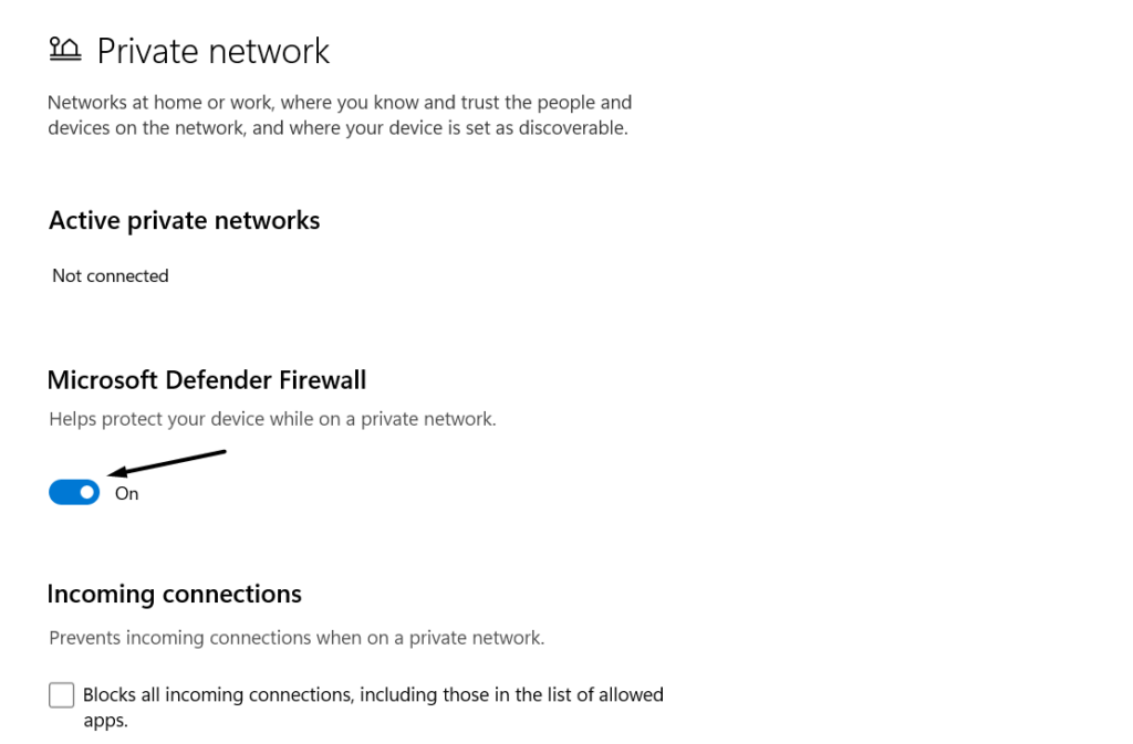 4.在下一個屏幕上,在Microsoft Defender 防火牆,關閉開關以將其禁用。
