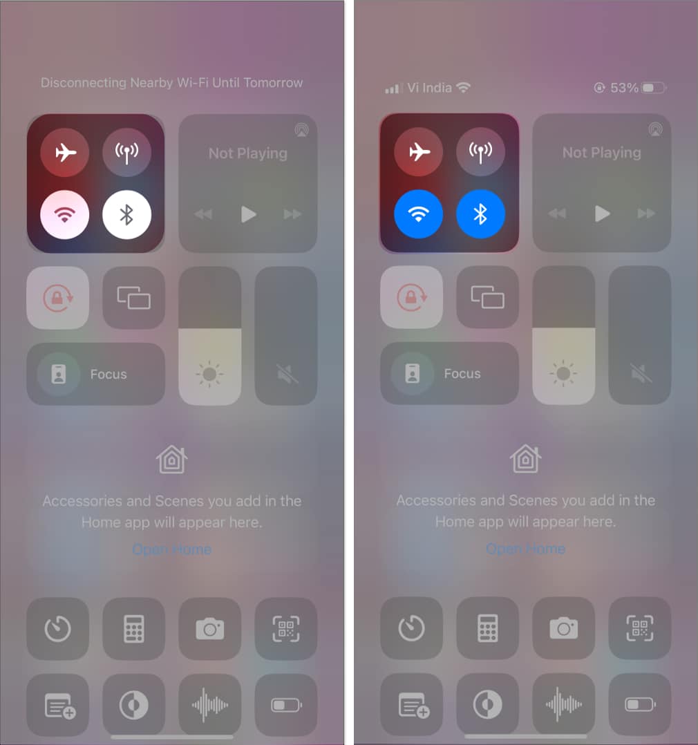 因此,在繼續該過程之前,請召喚控制中心並點擊藍牙和無線網絡連接圖標啟用這些服務。