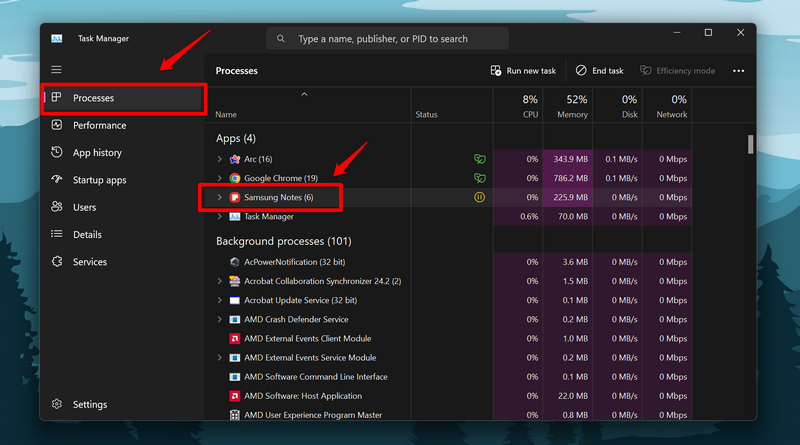因此,請按照以下步驟強制關閉 Windows 11 PC 或筆記本電腦上的 Samsung Notes 應用程序,然後重新啟動它: