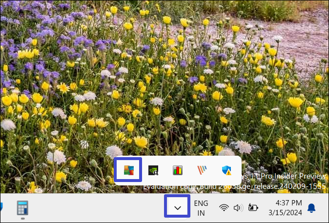 1. 單擊“顯示隱藏的圖標”任務欄上的按鈕(向上箭頭)可打開通知區域或系統托盤。