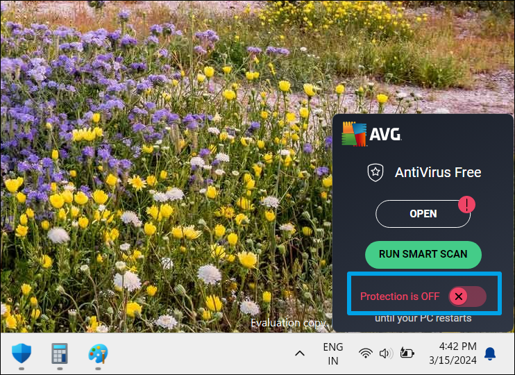 3. 如果您在系統托盤菜單中找不到關閉實時保護的選項,請打開防病毒應用程序,導航到實時保護設置,然後在此處將其禁用。