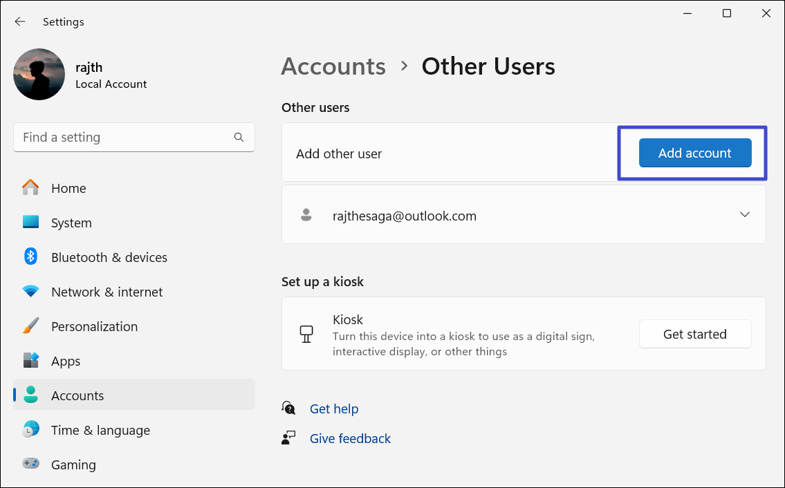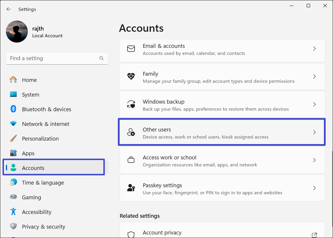1. 打開 Windows 設置,轉到“賬戶”,然後單擊“其他用戶”。