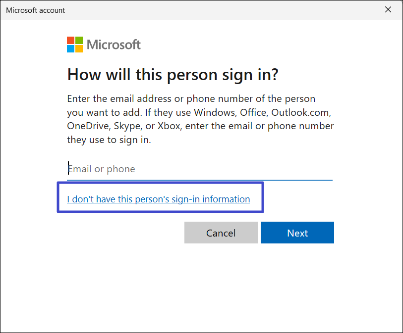 3. 接下來,單擊“我沒有此人的登錄信息”。