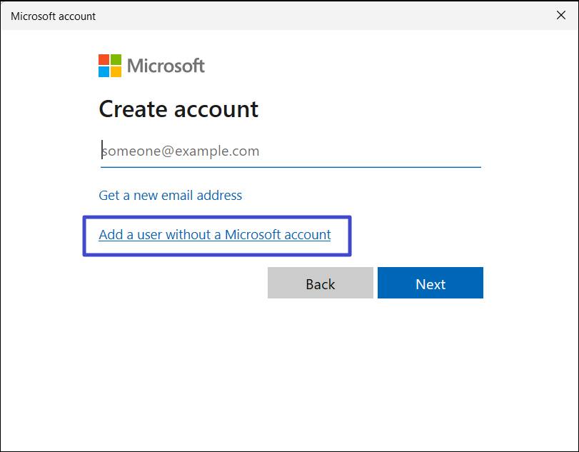 4. 單擊“添加沒有 Microsoft 帳戶的用戶”。