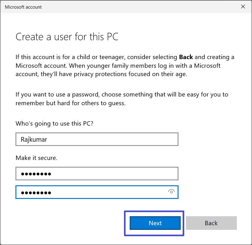 5. 最後,填寫您的帳戶詳細信息,然後單擊“下一個”。