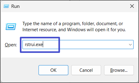 1. 按 Windows + R 打開“運行命令”框。類型 ”rstrui.exe”並按 Enter 鍵。