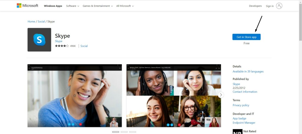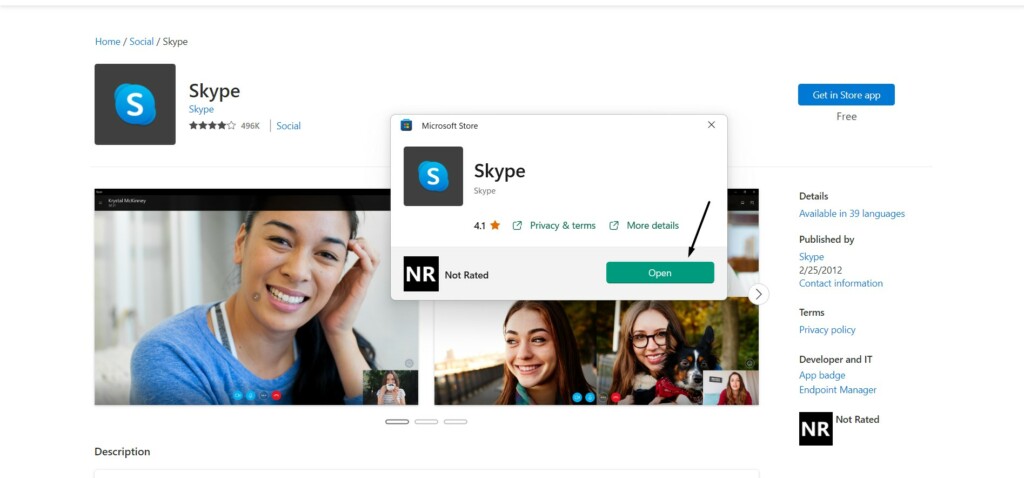 3.卸載後,點擊轉至 Skype 的 Microsoft Store 頁面並單擊進入商店應用程序。