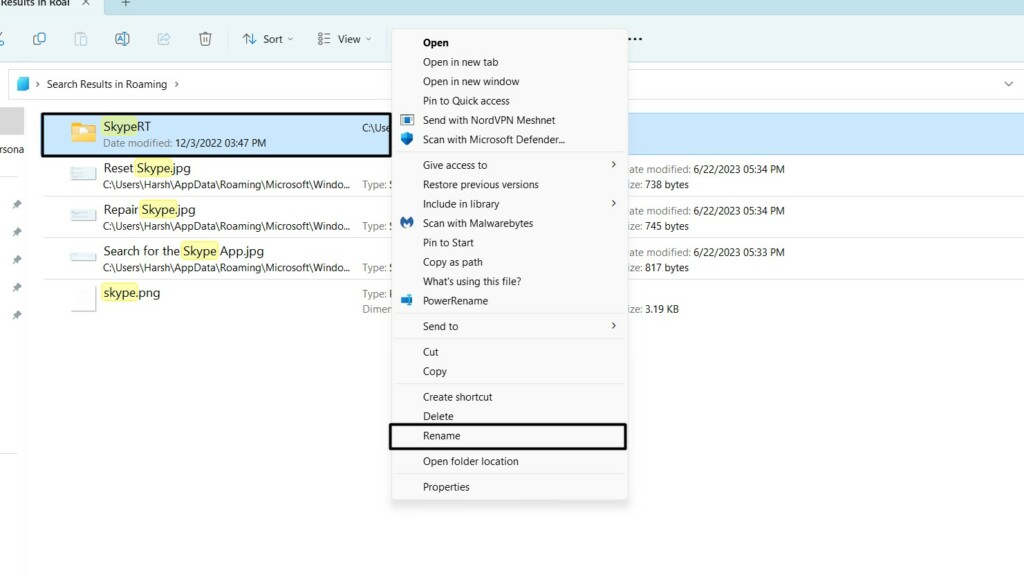 一些用戶提到重命名 Skype 數據文件夾輕鬆為他們解決了問題。當他們在 Windows 11 PC 上打開 Skype 時,這會創建一個新的 Skype 數據文件夾。