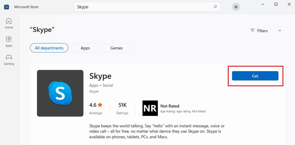 - 要重新安裝 Skype,請鍵入Skype進入搜索欄並選擇得到。