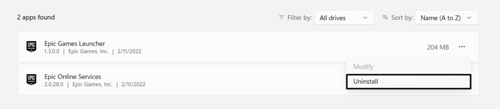 設置應用程序 > 已安裝的應用程序 > 查找該應用程序 > 單擊它旁邊的三個點 > 選擇卸載