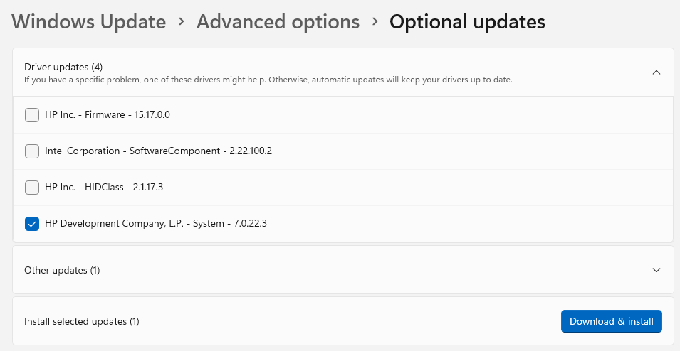 第4步:選擇列出的驅動程序更新,然後單擊“下載並安裝”按鈕。