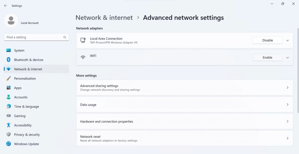 第6步:在Windows 設置應用程序,選擇您的互聯網連接,然後單擊使能夠。