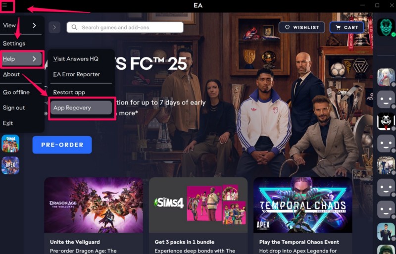 1. 啟動 EA 應用程序在您的 PC 或筆記本電腦上。