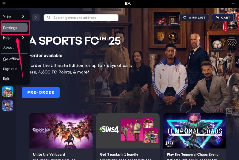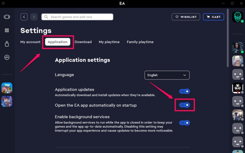 因此,請按照下面的步驟操作,確保 EA 應用程序配置為自動下載更新並重新啟動應用程序以在 Windows 11 設備上下載最新更新: