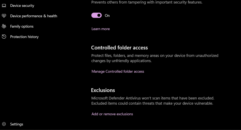 如果您信任導致錯誤的應用程序,您可以暫時禁用受控文件夾訪問,以允許應用程序進行必要的更改。以下是禁用受控文件夾訪問的方法: