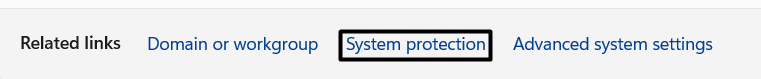 1.移至關於的部分設置程序,然後單擊系統保護選項。