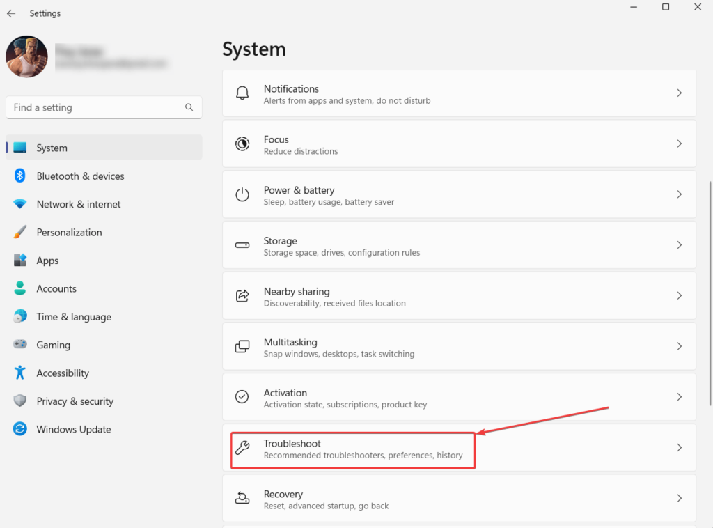 - 點擊故障排除從右側。
