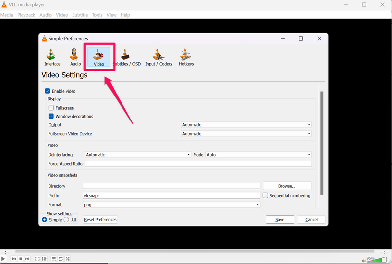 6. 更改 VLC Media Player 中的默認視頻輸出模式