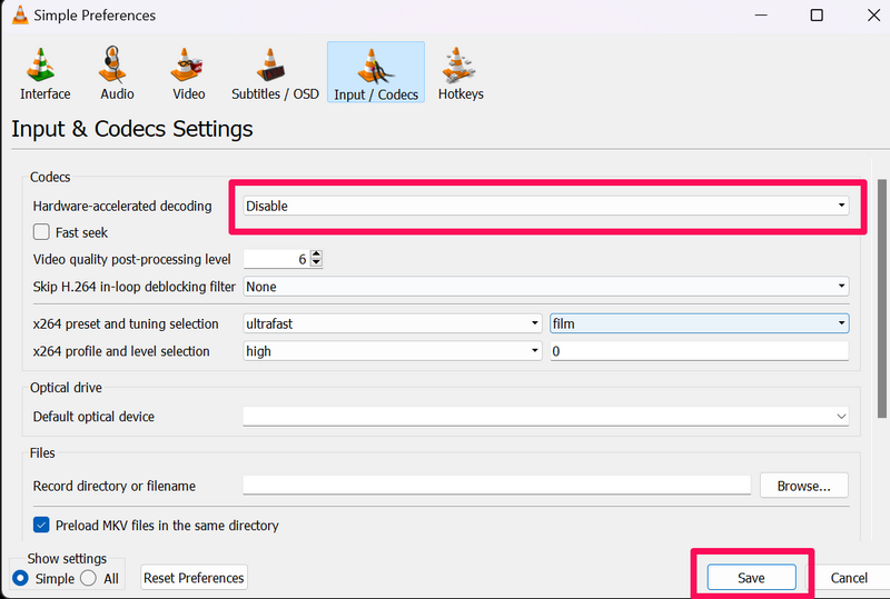 5.在VLC媒體播放器中禁用硬件加速解碼