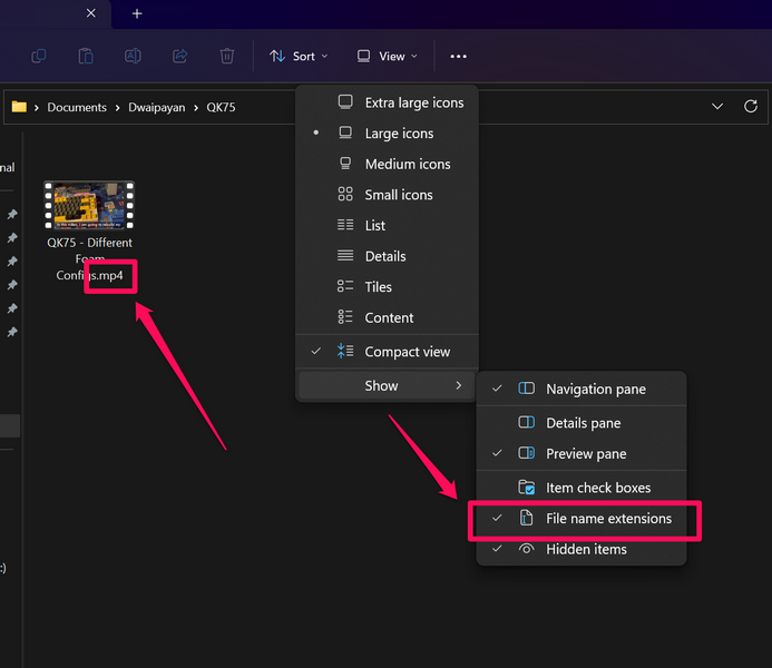 4.現在,您將能夠查看所有文件的文件格式顯示在 Windows 11 的文件資源管理器中。如果您沒有立即看到它們,請刷新窗口。