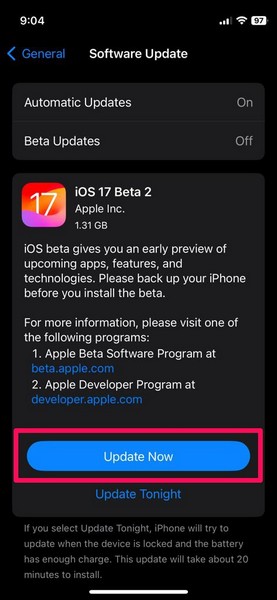4.等待最新的 iOS 更新出現在此屏幕上。