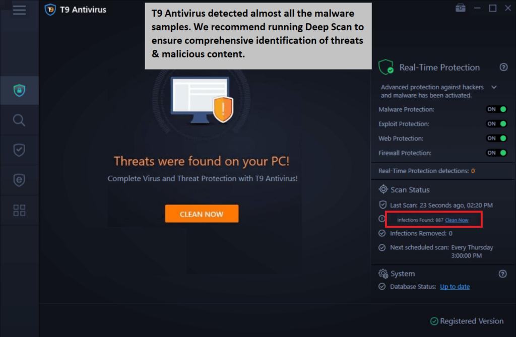 如果可能的話,暫時禁用現有的 Windows 安全功能並嘗試使用其他防病毒軟件運行病毒掃描。例如,T9 Antivirus 是 Windows 上最好的反惡意軟件工具之一。它提供針對惡意威脅的實時保護。它的惡意軟件定義數據庫經常更新,因此,即使是最新的病毒也無法躲避T9 Antivirus。