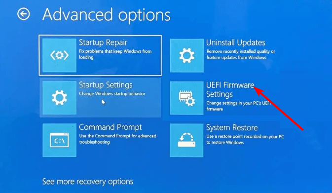 第5步:單擊UEFI 固件設置下的選項高級選項。