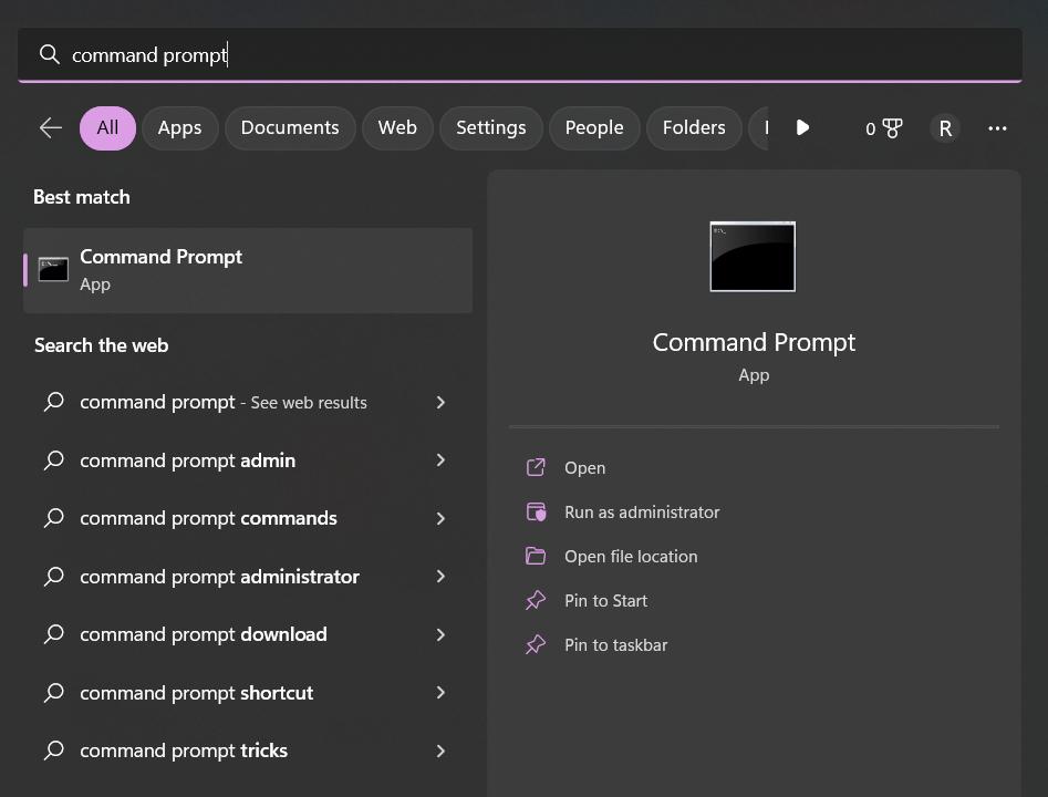 步驟一:點擊搜索圖標,輸入“命令提示符”並選擇“以管理員身份運行“ 選項。