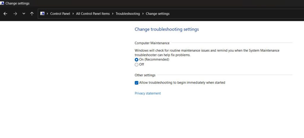 第4步:啟用此選項後,Windows 可以自動檢查日常維護問題。