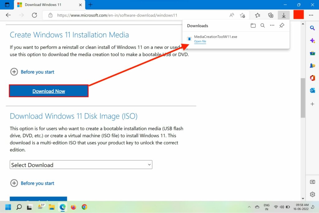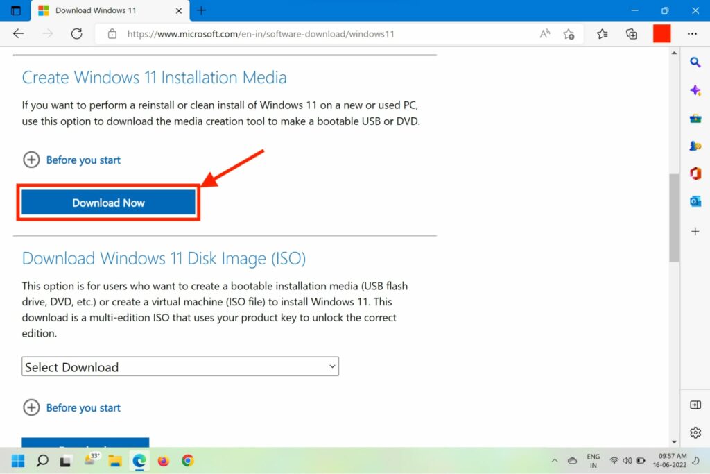 2.在下一頁上,單擊立即下載在下面創建 Windows 11 安裝介質。
