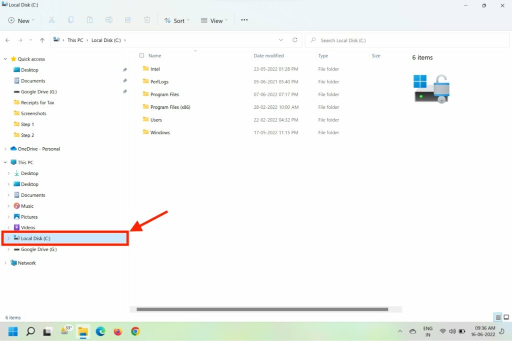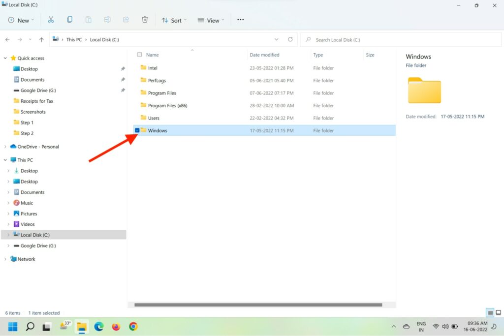 2.前往系統 (C:) 驅動器並打開視窗文件夾。