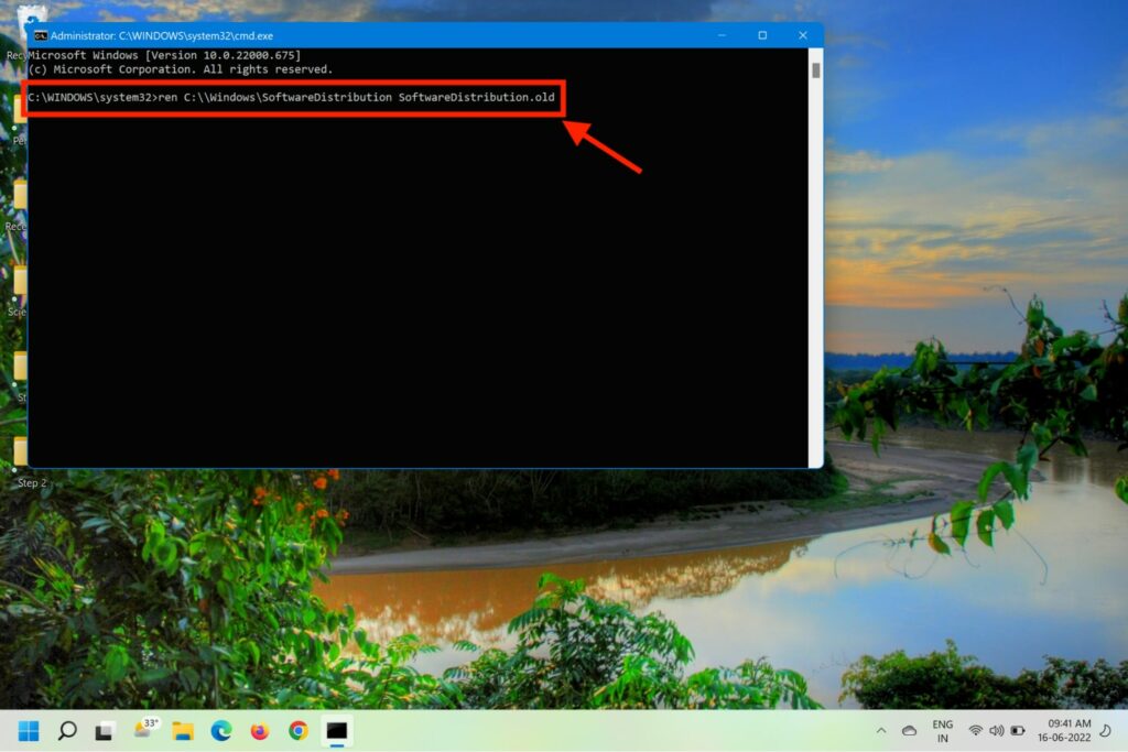 5.現在,清除並重命名軟件分發和貓根2包含命令的文件夾ren C:WindowsSoftwareDistribution SoftwareDistribution.old和任 C:WindowsSystem32catroot2 Catroot2.old。